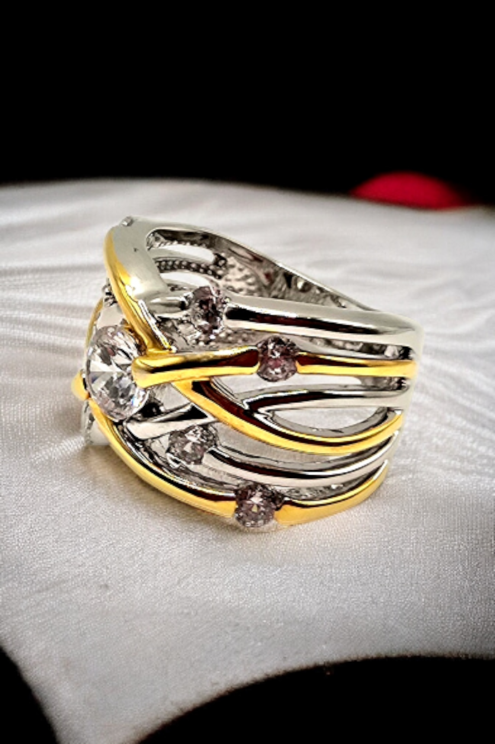 Two-Tone Interwoven Crossover Statement Ring