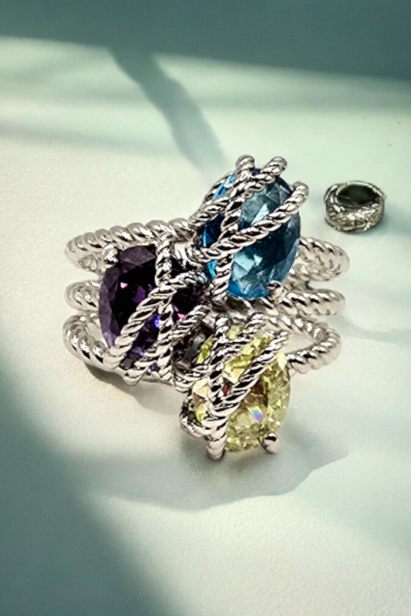 Triple-Row Twisted Cable Cluster Ring