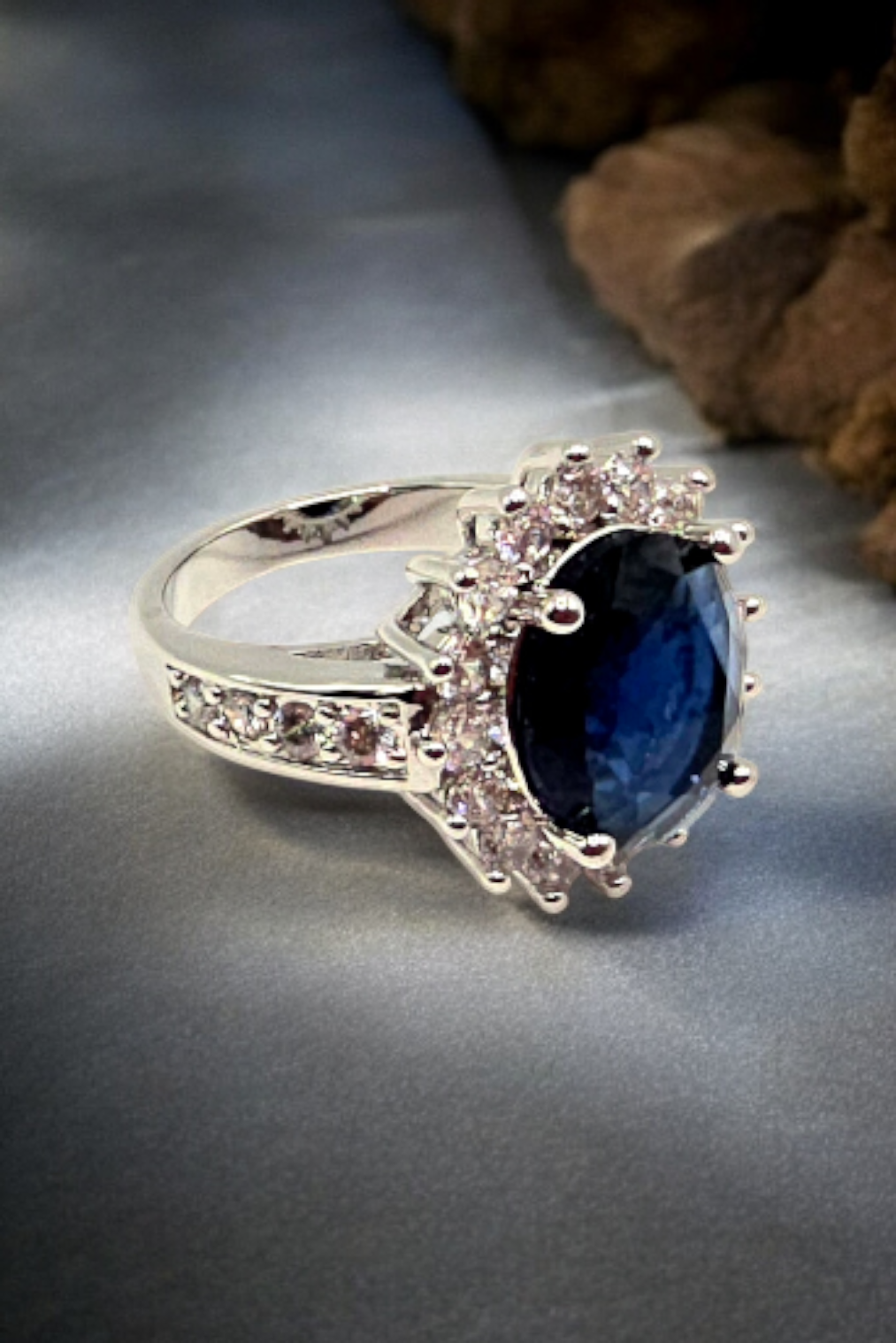 This regal piece is a Sapphire Oval Halo Cocktail Ring, a classic design that epitomizes...