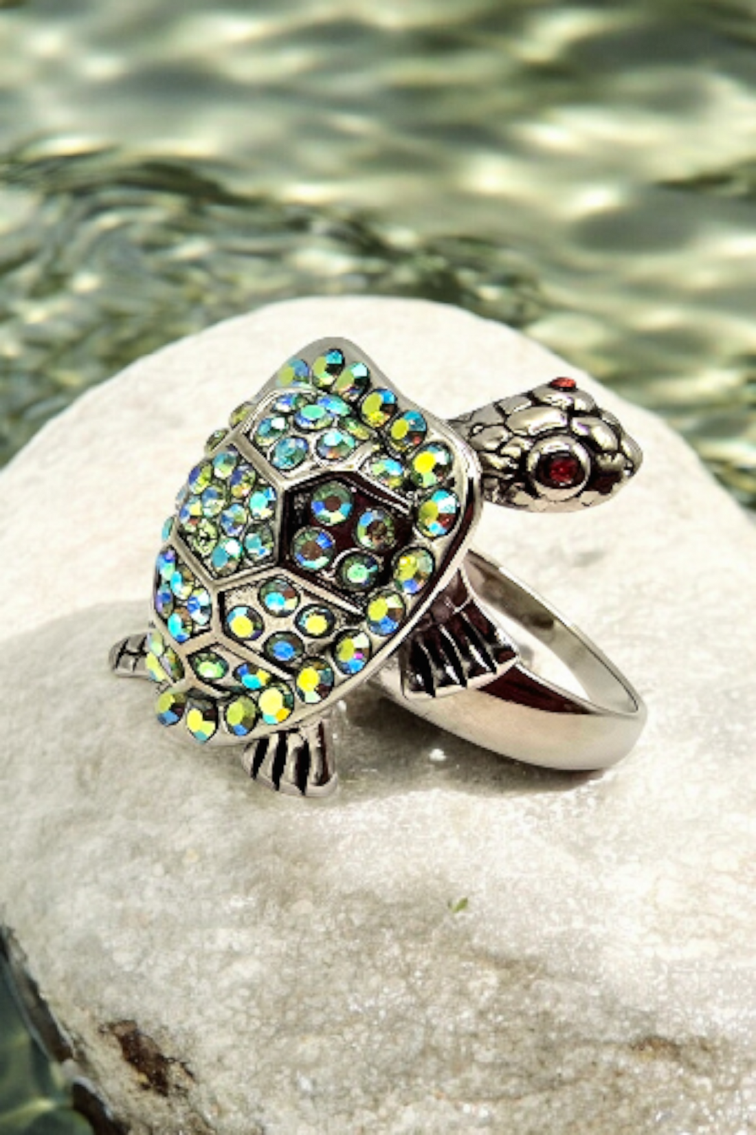 Crystal Encrusted Sea Turtle Statement Ring