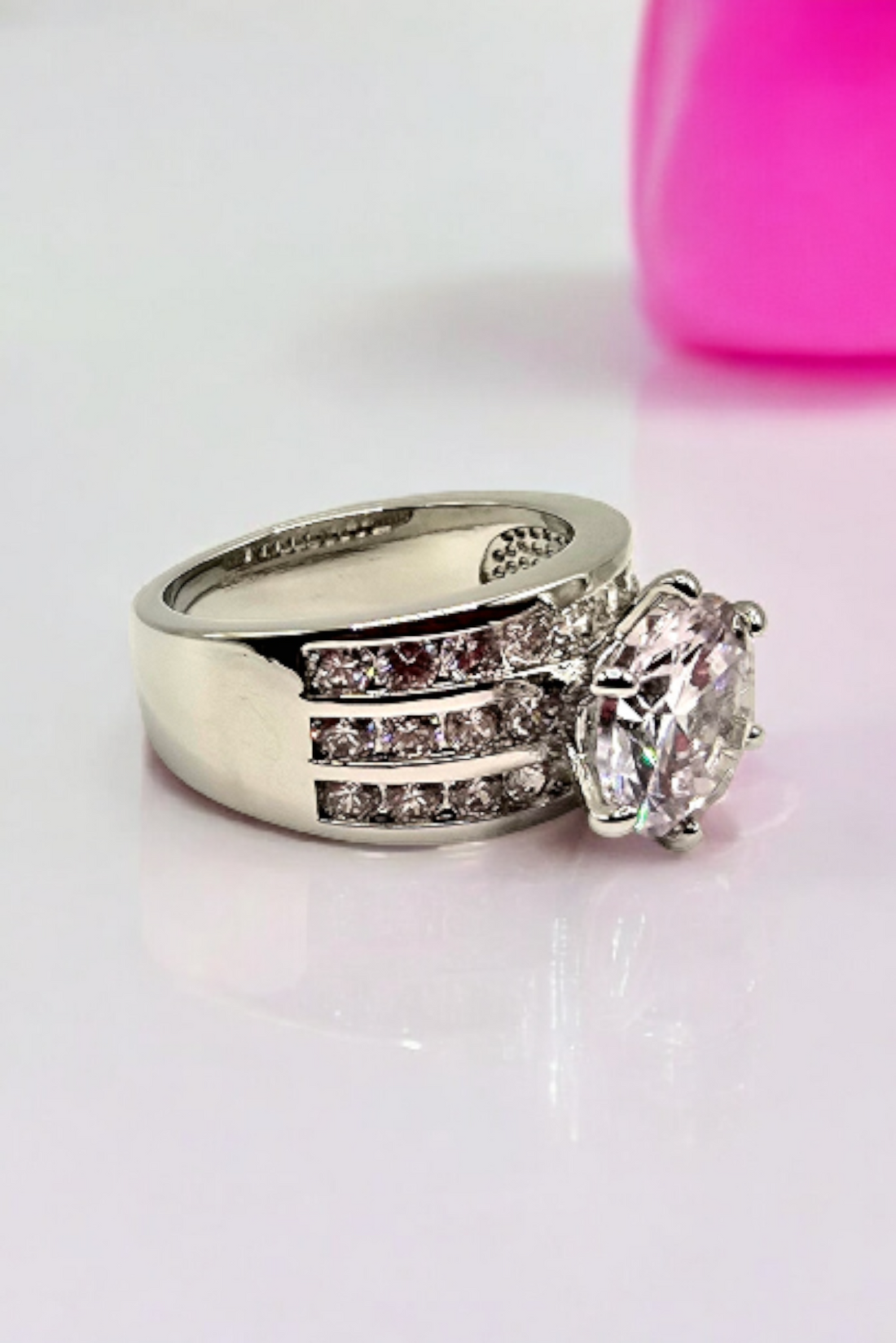 This stunning piece is a Two-Tone Interwoven Crossover Statement Ring, a design that represents the...