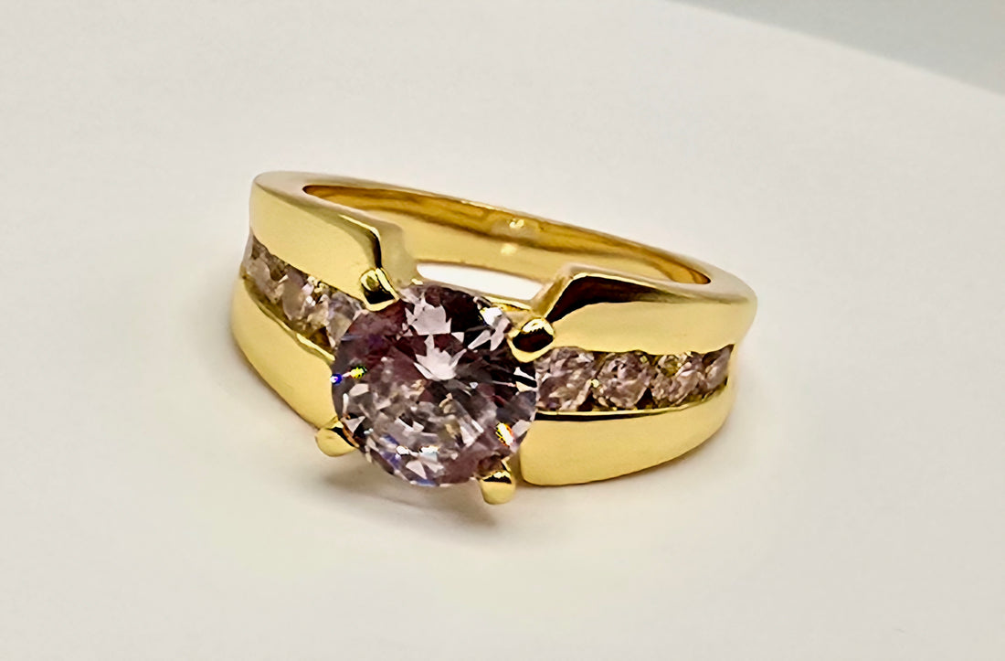 A dome styled ring featuring a combination of baguette-cut and round brilliant cubic zirconia stones....