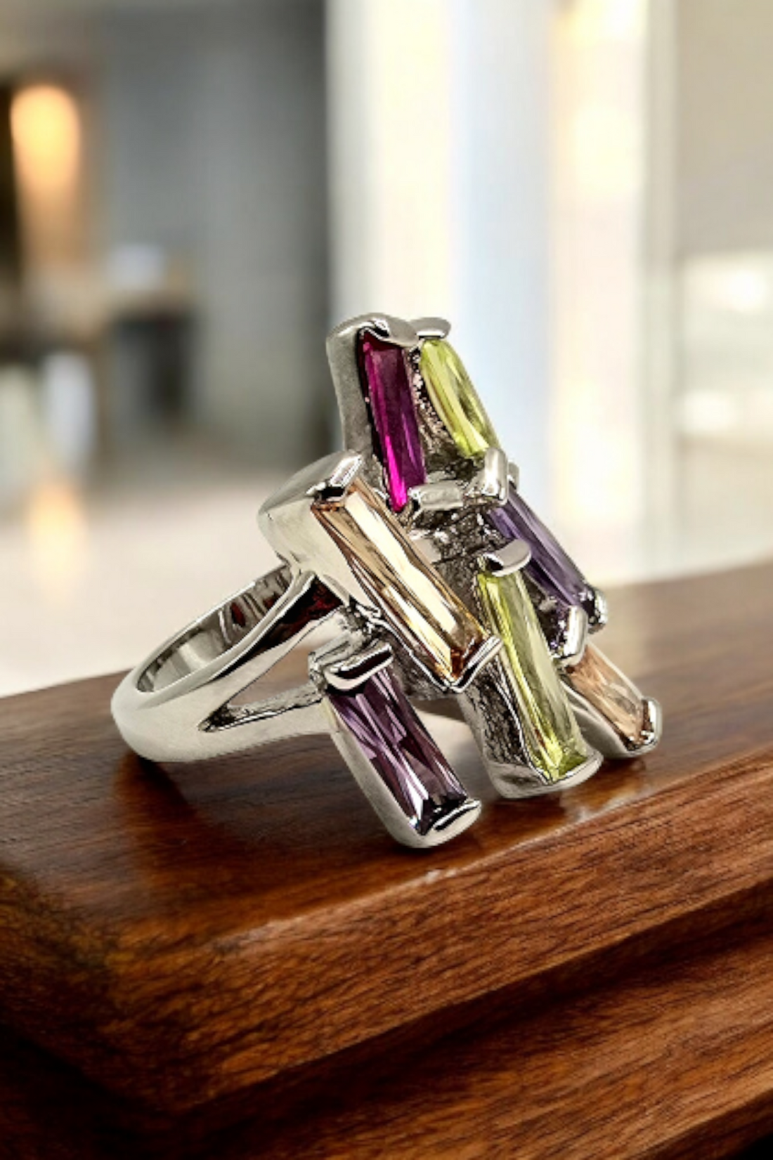 Elevate Your Style with Architectural Brilliance Make a bold statement with this Modernist Cocktail Ring,...