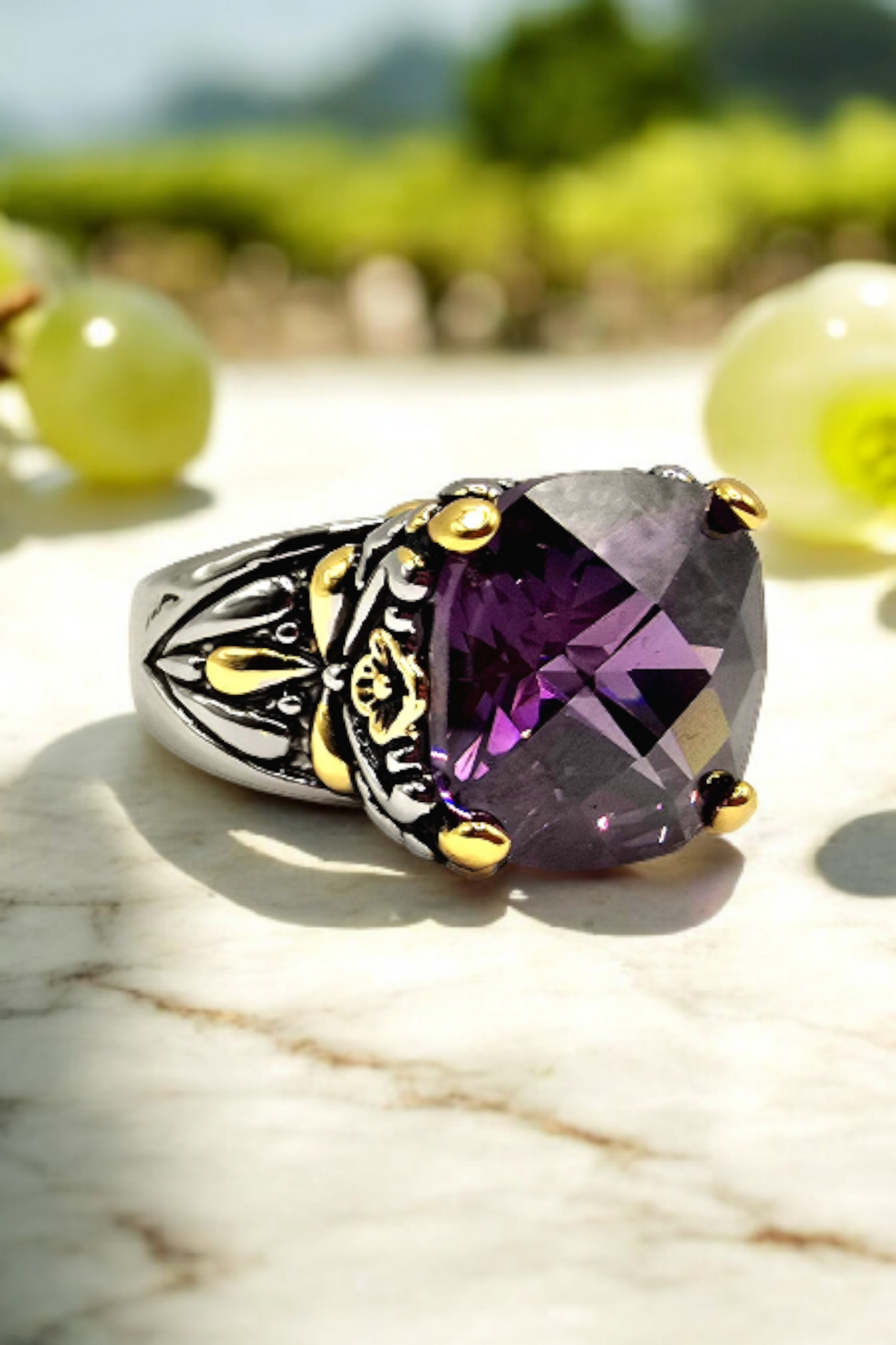 Cushion-Cut Gemstone Filigree Ring