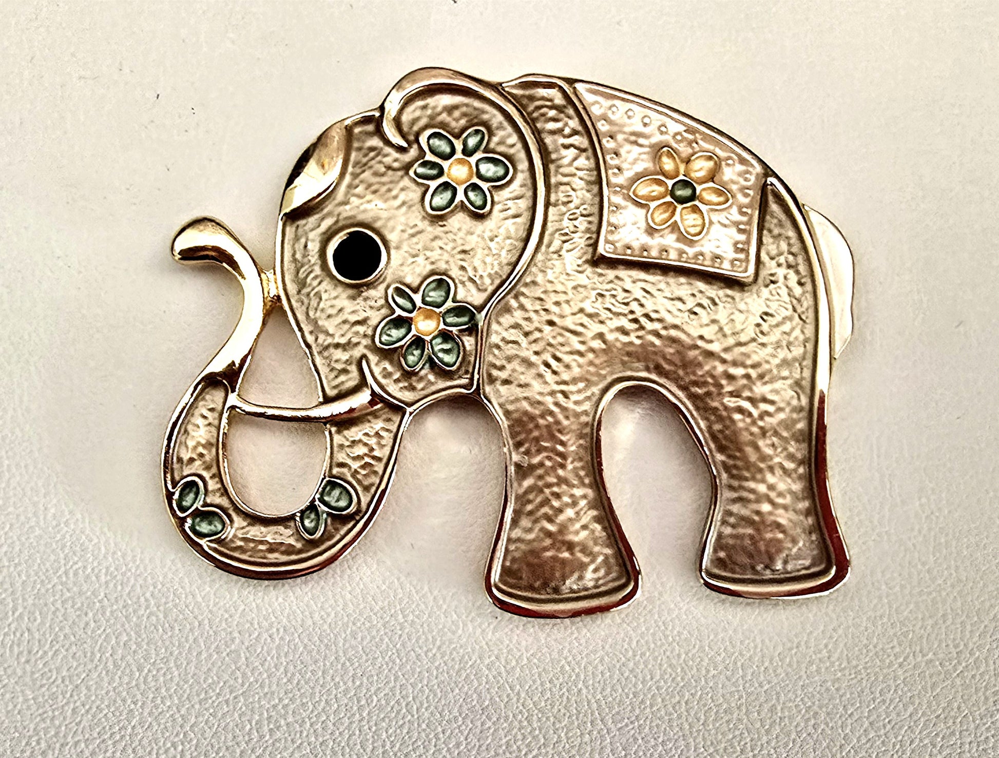 This cute elephant brooch symbolizes good luck, wisdom, strength, and family/motherhood.