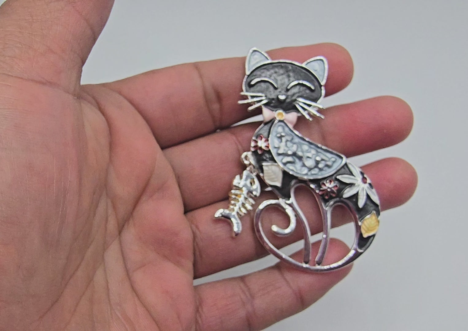 This Happy Cat brooch will be sure to add a sense of playfulness to you ensemble.