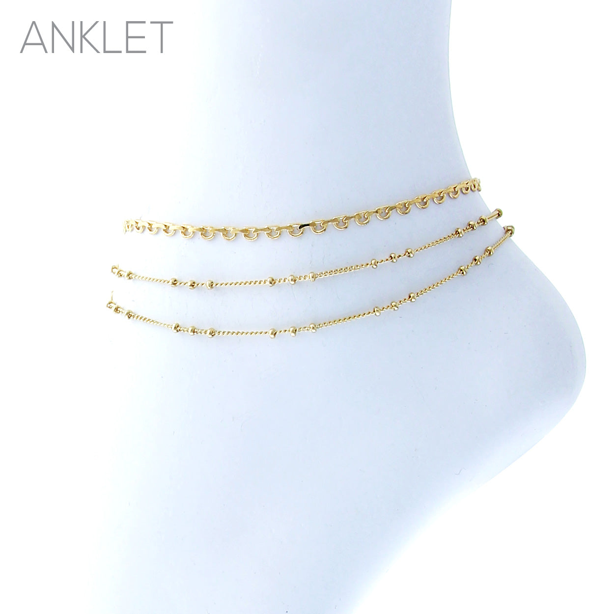● g ball chain 3 strand anklet