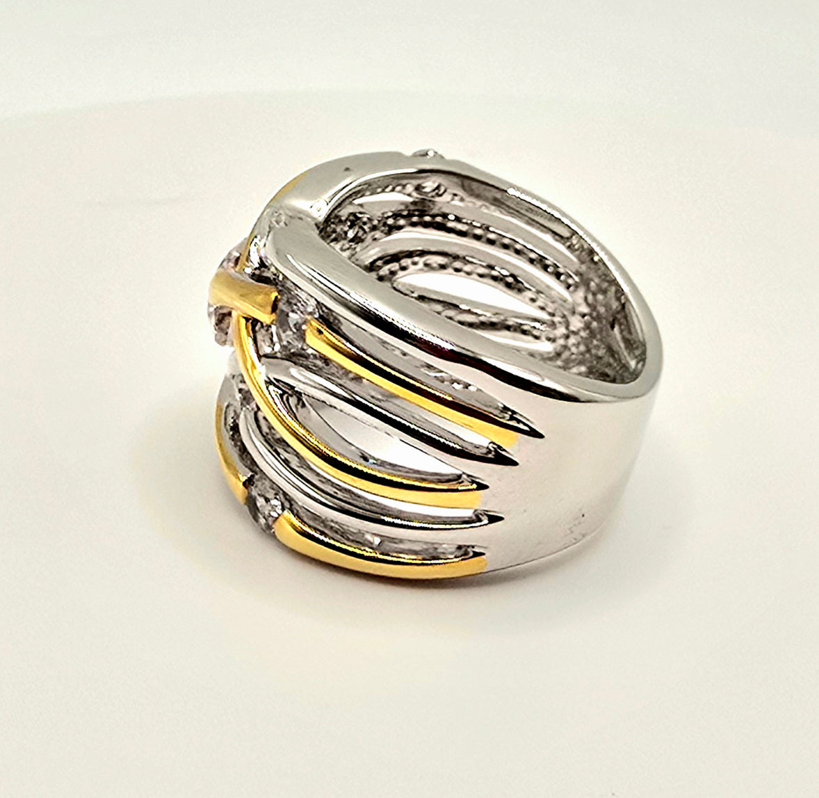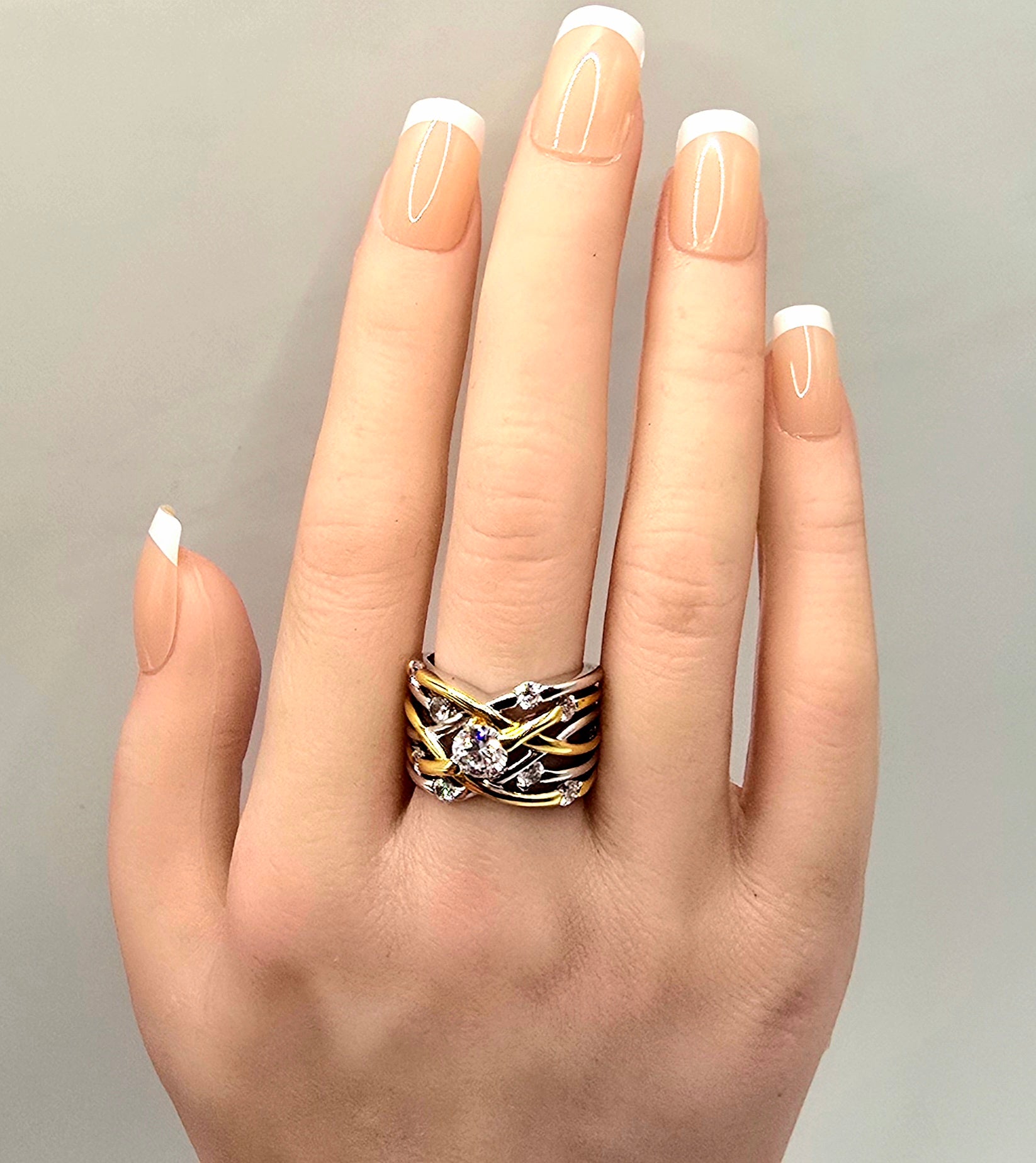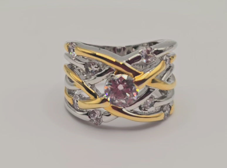 Two-Tone Interwoven Crossover Statement Ring